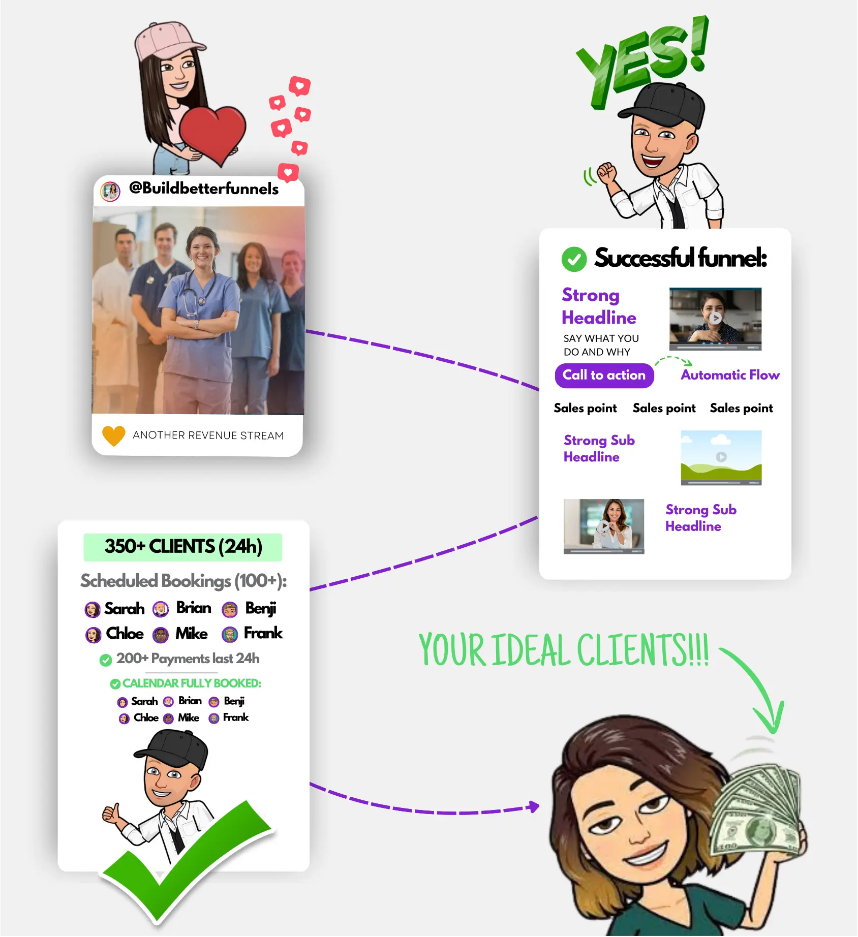 Our unique approach to funnels lies in one fundamental belief: people buy from people. When we craft converting funnels, we're not serving businesses or consumers; we're engaging with individuals. This philosophy shapes how we approach the sales funnel—each designed to appeal to real human needs, concerns, and aspirations.